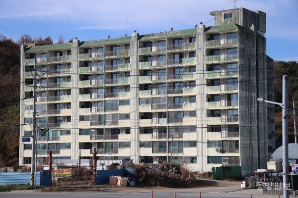도안면 화성리에 위치한 윤모아파트는 99세대 9층 규모로 1993년 7월 착공됐으나, 시공사 부도로 1996년 7월 공사 중단돼 30여 년간 방치돼왔다.