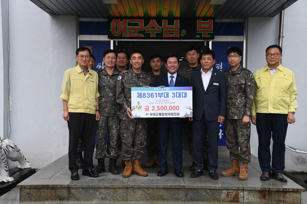 부여군 통합방위협의회(의장 박정현 부여군수)는 육군 8361부대 3대대를 방문해 장병들을 격려했다고 13일 밝혔다.