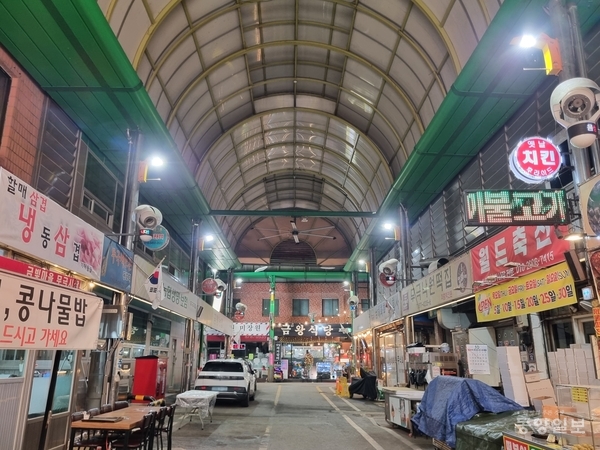 음성군 금왕읍 무극 전통시장이 아케이트 조명을 새롭게 설치하고 야관 경관을 개선했다.