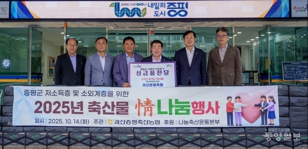 괴산증평축협(조합장 김홍기)은 14일 증평군을 방문해 취약계층에 전달해 달라며 소고기 국거리 100세트(400만원 상당)를 기탁했다. 증평군