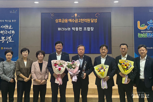 충북 영동 황간농협 박동헌 조합장이 지난 13일 농협중앙회 충북본부 월례조회에서 상호금융예수금 2000억원 달성탑을 수상했다.