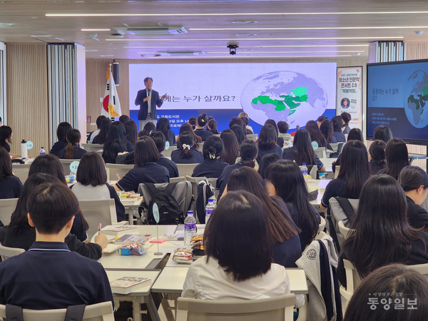 이날 강연은 박현도 서강대 유로메나연구소 교수가 ‘중동에는 누가 살까’를 주제로 진행했다. 박 교수는 중동 사회의 역사와 문화, 종교의 형성 배경을 학생 눈높이에 맞춰 설명하며, 다양한 문화가 공존하고 교류하는 세계의 모습을 알기 쉽게 전달했다. 학생들은 이를 통해 세계시민적 관점과 다양성의 가치를 배우는 시간을 가졌다.