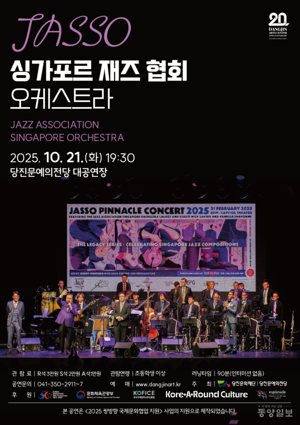 (재)당진문화재단(대표이사 이원철)은 문화체육관광부와 한국국제문화교류진흥원의 후원을 받아 추진하는 ‘2025 쌍방향 국제문화협업 지원’ 사업으로 오는 21일 오후 7시 30분 당진문예의전당 대공연장에서 싱가포르 재즈 협회 오케스트라(Jazz Association Singapore Orchestra, 이하 JASSO) 초청 공연을 개최한다.