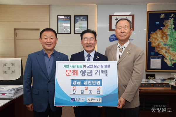 진천군 산림조합은 17일 진천군청을 방문 지역 문화 진흥을 위한 문화성금 3000만원을 기탁했다.