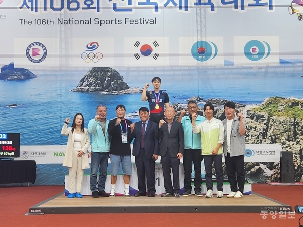 영동고 장시원(1년) 선수가 106회 전국체육대회 역도 인상종목에서 금메달을 목에 걸었다.