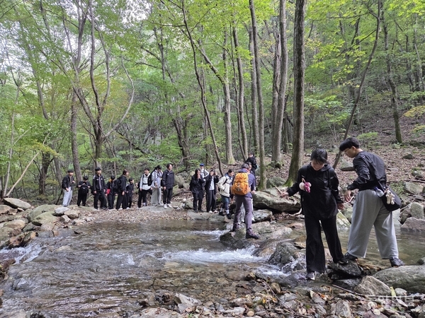 영동 심천중(교장 박행화)이 21일 또래 집단 탐험 활동을 통해 자연의 소중함을 느끼게 하고 도전 정신을 함양하며 극기의 기회를 제공하고자 자기 도전 탐험 활동 등반 체험을 진행했다.