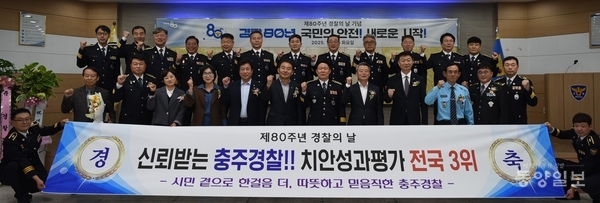 충주경찰서(서장 윤원섭)가 80주년 ‘경찰의 날’을 맞아 경찰청 주관 전국 경찰관서 치안성과평가에서 전체 3위(2·3급지 부문 1위)를 달성하며 창설 이래 최초로 전국 상위권에 이름을 올렸다.
