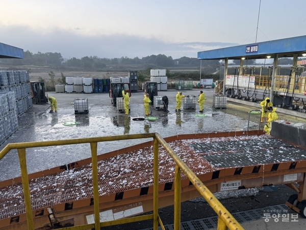 21일 오후 11시 17분께 음성군 대소면 화학물질 판매업체에서 누출되는 사고가 발생했다.음성 소방서에 따르면 공장 내 지하 저장탱크에 보관돼 있던 VAM(비닐 아세테이트 모노모, 4류 위험물) 6만ℓ중 400ℓ 정도가 누출된 것으로 확인됐다.
