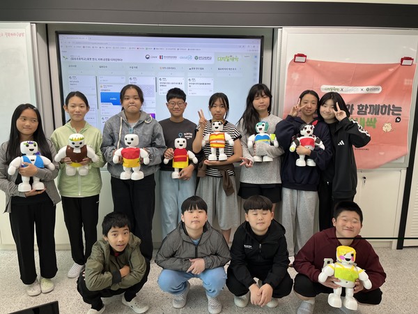 ‘AI 구연동화 만들기’는 AI 로봇 파이보가 동화 속 인물로 등장하고, 학생들은 음성, 동작, 효과음을 직접 설정해 하나의 이야기를 완성했다. 친구들과 함께 이야기 내용을 정하고 역할을 나누며 자연스럽게 협동심도 키웠다. 놀이처럼 배우는 AI 수업에 학생들은 큰 흥미를 보였다.