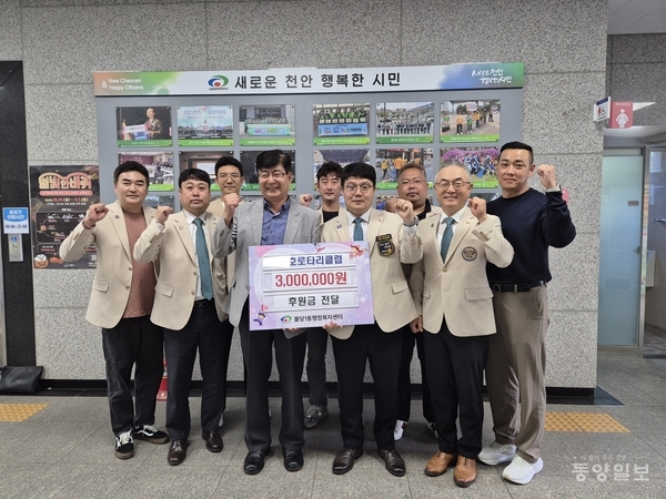 천안동호로터리클럽(회장 이승배)이 23일 불당1동행정복지센터에 후원금 300만원을 기탁했다.