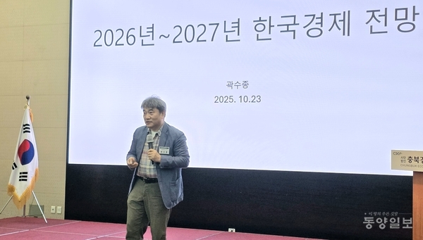 곽 소장은 이날 ㈔충북경제포럼(회장 이재진)과 한국은행 충북본부(본부장 한승철)가 청주 엔포드호텔에서 공동 개최한 264차 월례강연회에서 '2026~2027년 한국경제 전망' 주제로 강연에 나섰다.