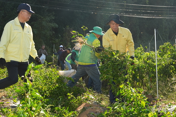 이와 연계해 지난 24일엔 조병옥 군수와 실과소, 농협중앙회 음성군지부, 기관단체 관계자 등 60여명이 음성읍 일원 농가에서 고춧대를 뽑고, 영농 부산물 파쇄 등을 지원했다.