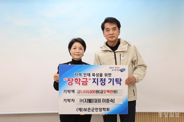 ㈜지웰의 이종숙 대표가 24일 보은군청을 방문해 보은군민장학회에 지역 미래 인재 육성을 위해 써 달라며 장학금 500만원을 기탁했다.