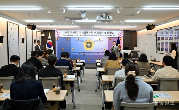 세종시의원, 전문위원, 정책지원관 등 40여 명이 참여한 이번 교육은 2026년도 본예산 심사를 앞두고 재정분석과 예산심사 역량을 높이기 위해 마련된 실무 중심 교육이다.