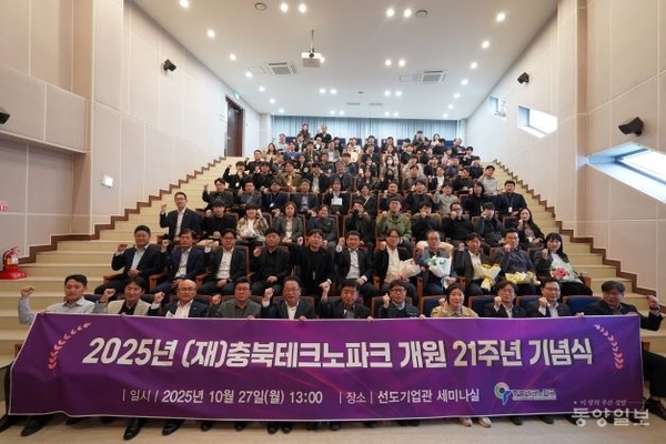 충북테크노파크(충북TP)는 27일 기관 내 선도기업관 세미나실에서 21주년 개원식을 열었다.