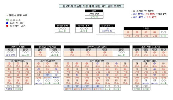 총책, 실장, 팀장, 팀원으로 이어지는 지휘·통솔체계를 갖추고 역할을 분담하는 등 조직적으로 범죄를 저지른 것으로 확인됐다.