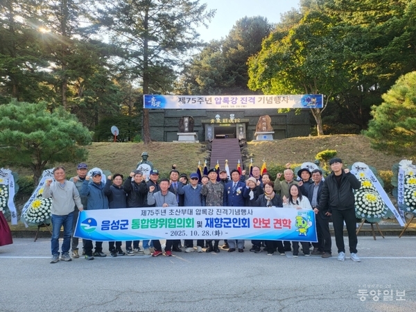 음성군 통합방위협의회와 재향군인회(회장 윤화영) 회원 30여명이 경기도 포천시 6보병 사단 사령부에서 열린 압록강 진격 75주년 기념식에 참가해 호국영령들의 넋을 기렸다.
