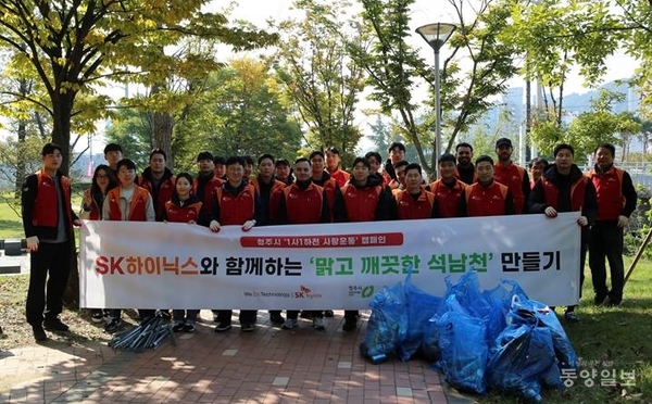 SK하이닉스 구성원 및 SK호크스 선수단 32명이 29일 청주시 흥덕구 석남천 일대 환경정화 봉사활동에 나섰다.