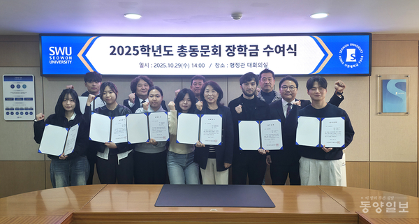 서원대 총동문회(회장 강진모)는 29일 행정관 대회의실에서 후배 사랑과 나눔의 가치를 되새기고 재학생들의 학업 의욕을 북돋기 위해 장학금 1000만원을 대학측에 전달했다. 서원대