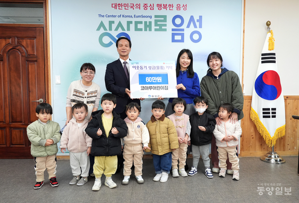 음성군 음성읍 코아루어린이집(원장 권은혜) 원생 9명이 3일 군을 방문해 어린이들의 언어 치료에 필요한 성금 60만원을 조병옥 군수에게 기탁하며 의미를 더했다. 음성 심영선 기자 sun5335@dynews.co.kr