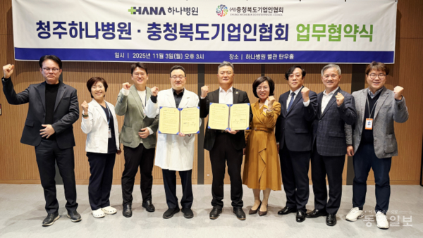 양 기관은 이번 협약을 통해 충북기업인협회 회원사 임직원과 가족들에게 체계적인 의료서비스를 제공, 협회는 회원사들이 청주 하나병원을 이용할 수 있도록 홍보할 계획이다.