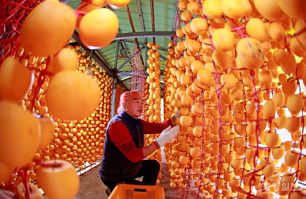 농민들은 정성껏 깎은 감을 실오라기처럼 한 줄 한 줄 엮는다. 살갗을 벗은 감들이 바람에 흔들리며 황금빛으로 반짝이는 풍경은 그 자체로 ‘가을의 정수(精髓)’를 연출한다.