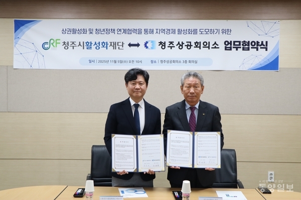 청주상공회의소(회장 차태환)와 (재)청주시활성화재단이 지역경제 활성화와 청년정책 기반 강화를 위한 협력체계를 구축한다.