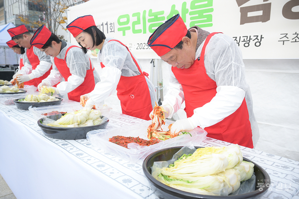 세종시는 지난 8일 나성동 도시상징광장에서 11회 김장담그기 행사를 했다.