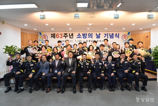 부여소방서(서장 이산휘)가 7일 3층 대회의실에서 소방공무원과 민간 표창 대상자 등 85여 명이 참석한 가운데 63주년 소방의 날 기념행사를 열었다.
