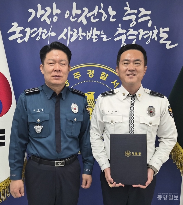이 같은 실적으로 경찰청이 주관한 ‘2025년 교통사고 줄이기 한마음대회’에서 교통과 이지훈<사진 오른쪽> 경위가 표창을 받았다.