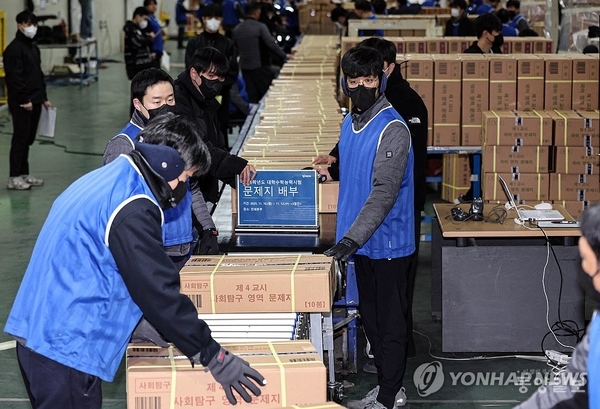 이후 수능 당일인 13일 아침에 1310개 시험장으로 운반될 예정이다.