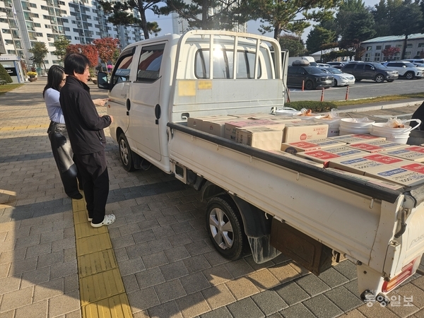대소면은 10일 지역 업체인 푸드뱅크에서 지원한 구호 물품 4종류, 202박스를 긴급 지원했다.