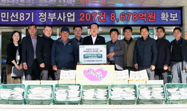 전국 한우협회 괴산군지부(지부장 원영호)가 10일 군을 방문해 “이웃들의 따뜻한 겨울나기를 위해 전달해 달라”며 한우곰탕 335개와 한우세트 70개를 송인헌 군수에게 기탁하고 이웃을 보듬는 의미를 더했다.