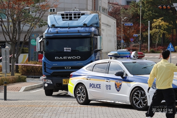 ▲ 11일 오후 2시께 청주시 서원구 산남동 청주교육지원청 경찰의 호송을 받으며 2026학년도 수능 시험지가 도착했다. 조창희 기자 changhee@dynews.co.kr