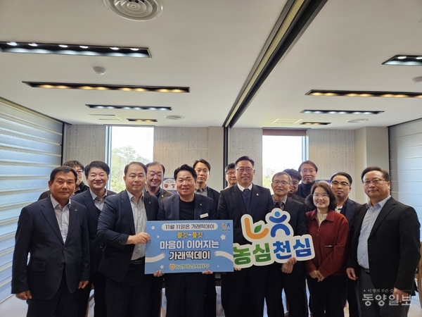 농협 아산시지부(지부장 이규황)가 11일 우리쌀 홍보를 위해 가래떡데이 떡 나눔 행를 실시했다고 밝혔다.