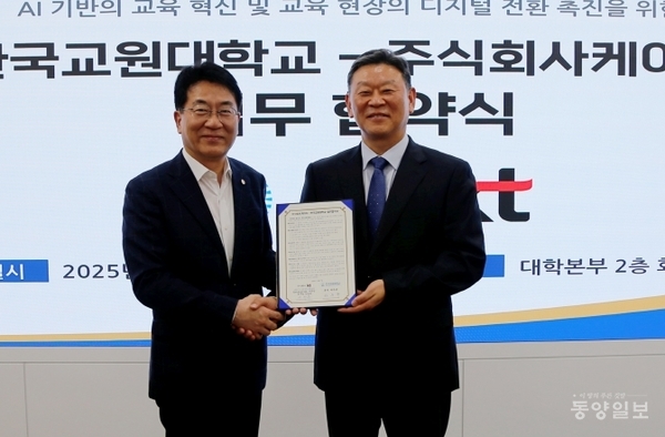 한국교원대는 KT(대표이사 김영섭)와 미래 디지털 인재 양성을 목표로 AI 기반 교육 현장의 디지털 전환을 함께 추진하는 업무협약(MOU)을 체결했다. 교원대