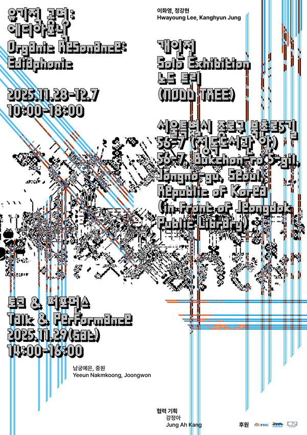 부대 프로그램은 29일 오후 2시~4시 CN갤러리 1·2층에서 아티스트 토크와 사운드 퍼포먼스가 진행되며, 모더레이터 강정아, 강병우와 사운드 아티스트 정강현, 남궁예은, 실험음악가 중원이 참여한다.