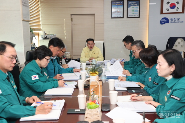 송기섭 진천군수는 12일 군수 집무실에서 지난달 발생한 음성군 소재 기업의 화학 사고와 관련한 대책 마련 간부회의를 주재했다.