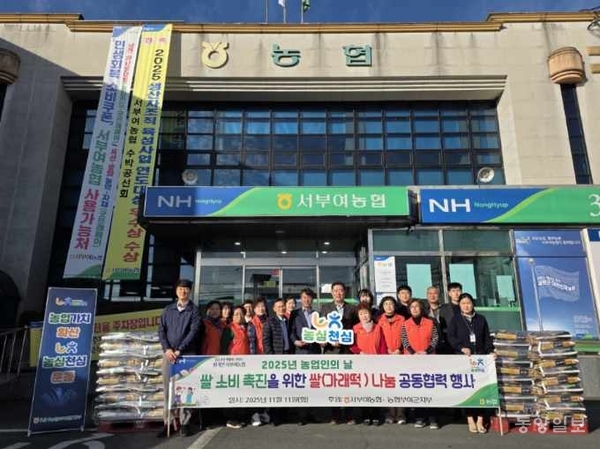 지난 11일 서부여농협 본점에서 열린 이번 행사는 2025년 농업인의 날을 기념해 지역 농업의 소중함을 되새기고, 쌀 소비 확대를 통해 농가의 안정적 소득을 지원하기 위해 마련됐다.