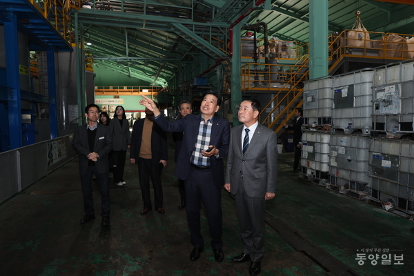 이날 송 군수는 생산 현장과 공정 설비를 둘러보며 기업 운영 실태를 점검하고 근로자들과 소통하는 시간을 가졌다.