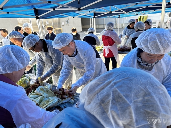 이규황 지부장은“사랑의 김장김치 행사로 소외된 계층에 따뜻한 사랑의 정성을 전달하는 계기가 됐다”며“앞으로도 취약계층을 위한 나눔실천 등의 지역사회공헌 활동을 지속적으로 펼쳐나가겠다.”고 말했다.아산 서경석 기자 ks2run@dynews.co.kr
