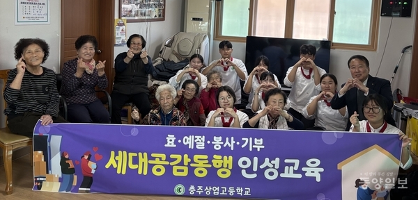 충주상고(교장 박종식)가 14일 인근 경로당에서 외식조리과 학생들과 함께 ‘2025 세대공감동행 인성교육’ 행사를 진행했다.
