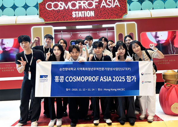 순천향대(총장 송병국) GTEP(Global Trade Expert Program, 지역특화청년무역전문가양성사업단) 사업단이 지난 12~14일 홍콩 컨벤션센터(HKCEC)에서 열린 ‘코스모프로프 아시아 2025(Cosmoprof Asia 2025)’에 참여해 충남관 참가 기업 및 국내 유망 중소기업 14개 사의 해외 마케팅 활동을 지원했다고 밝혔다.