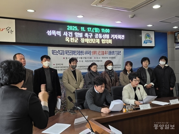 (사)충북지자체장애인협회 옥천군지회 등 9개 장애인 단체로 구성된 옥천군장애인단체협의회는 17일 옥천군청에서 기자회견을 갖고 “이번 사건이 장애인 권익옹호에 힘써야 할 공적기관에서 벌어졌다는 데 충격과 분노를 금할 수 없다”며 “이는 한 개인의 일탈을 넘어 허술한 장애인 인권보호 체계와 지역사회 무관심이 빚어낸 결과”라고 지적했다.