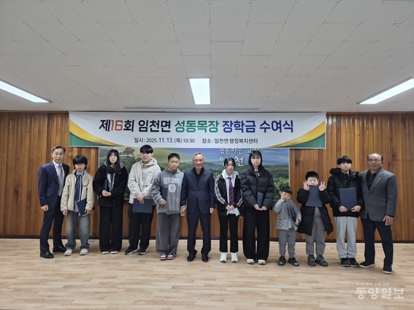 정용택 임천면장은 “한결같은 선행을 16년 동안 이어온 이용우 대표님께 깊이 감사드린다”며 “성동목장 장학금은 단순한 지원을 넘어 학생들에게 용기와 희망을 전하는 소중한 자산”이라고 말했다.