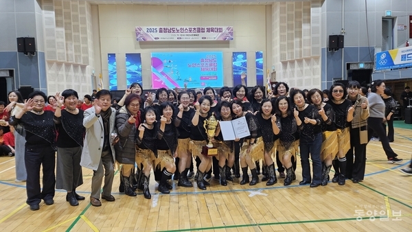 부여군노인종합복지관(관장 원종찬) 라인댄스 1반이 17일 아산시민체육관에서 열린 ‘2025 충남도노인스포츠클럽 체육대회’ 라인댄스 부문에서 대상(1위)을 차지했다.<사진>