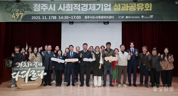 청주시는 17일 청주도시재생허브센터에서 사회적경제기업와 지역 단체 관계자 100여명이 참석한 가운데 ‘2025년 사회적경제 성과공유회’를 열었다.