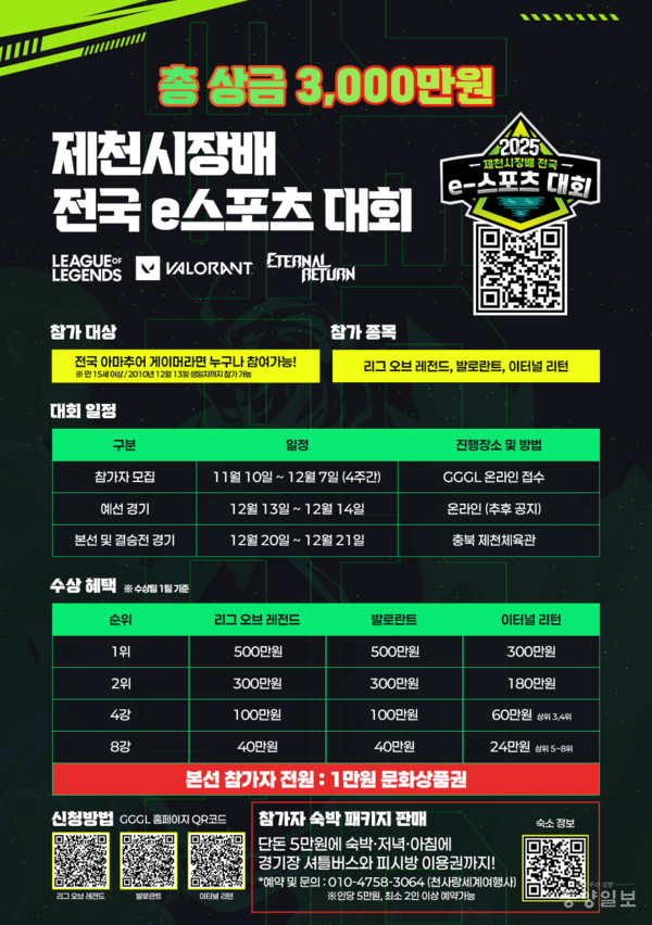 김창규 제천시장은 “올해 3회째를 맞는 제천시장배 전국 e-스포츠대회가 앞으로도 시민과 선수들이 함께 열정을 나누는 축제가 되도록 노력하겠다”며 “특히 지역 콘텐츠 산업 기반 조성을 위해 추진 중인 제천 e-스포츠 상설경기장이 건립되면 제천은 명실상부 중부권 e-스포츠의 중심지로 도약하게 될 것”이라고 말했다. 제천 장승주 기자 ppm6455@dynews.co.kr
