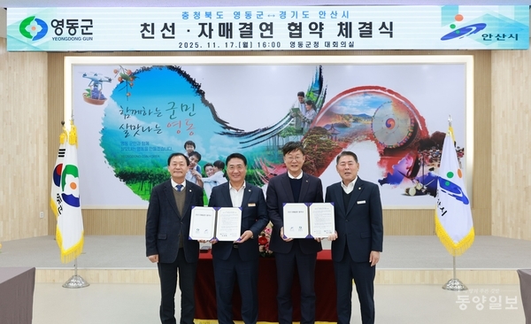 영동군(군수 정영철)과 경기도 안산시(시장 이민근)가 17일 자매결연 협약을 했다.