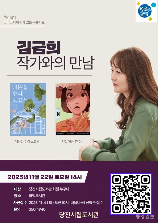 당진시립도서관(관장 최명용)은 합덕도서관에서 22일 오후 2시, 섬세한 문체와 따뜻한 서사로 많은 독자의 사랑을 받는 소설가 김금희 작가를 초청해 북콘서트를 개최한다.<사진>